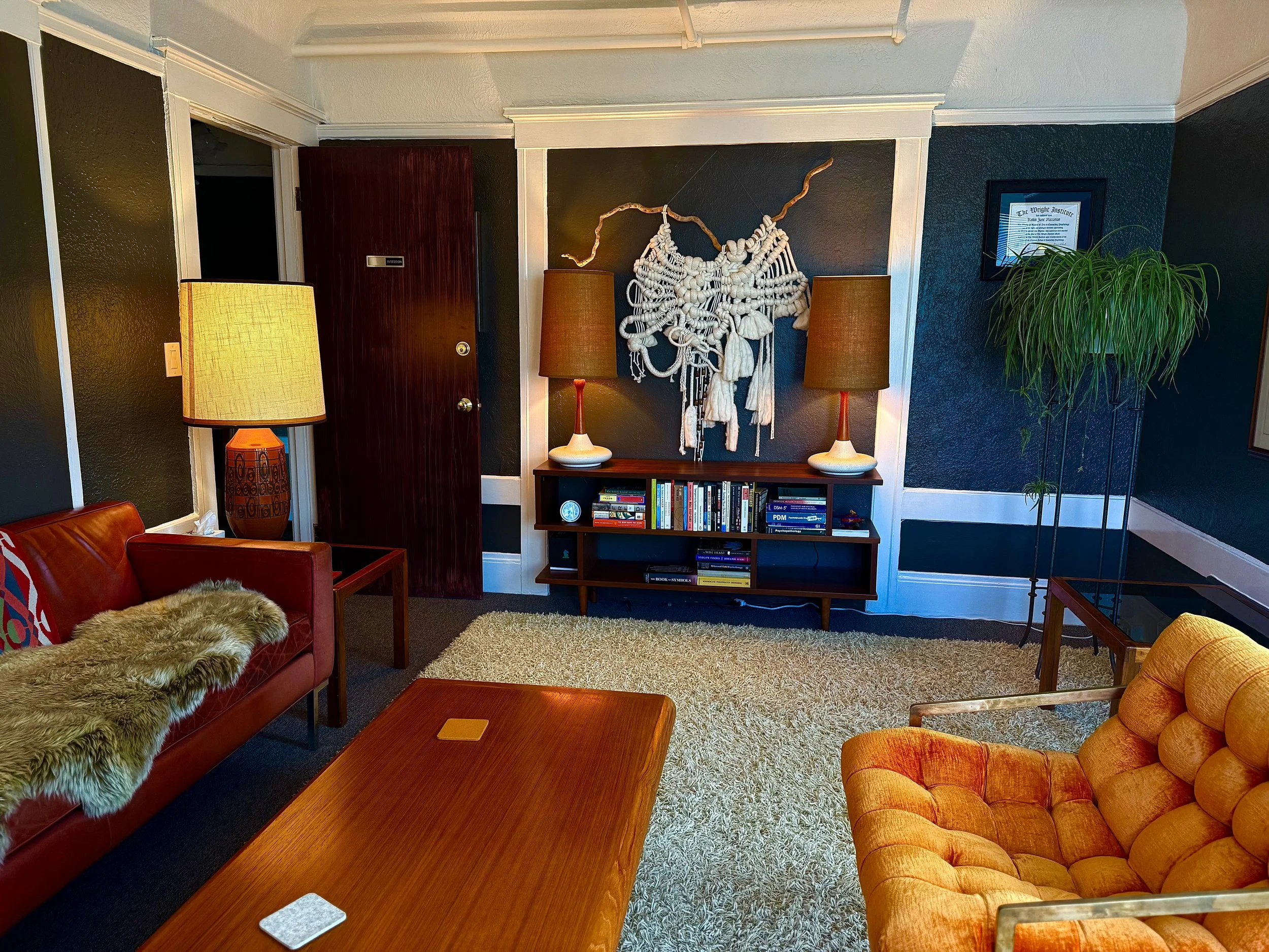 I offer weekly psychotherapy to adolescents, adults and couples who are based in California. They are 50-minutes long and can be attended in-person or remotely.